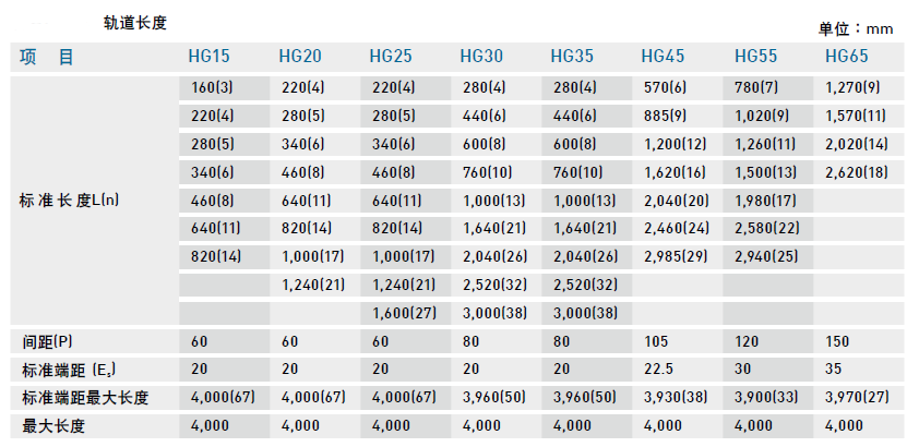 2. 標準端距最大長度是指左、右端距皆為標準端距之導軌最大長度。