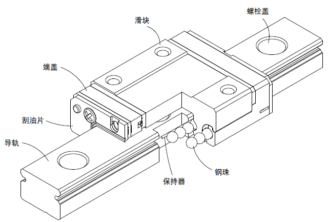 ? 滾動循環(huán)系統(tǒng):滑塊、導(dǎo)軌、端蓋、鋼珠、保持器