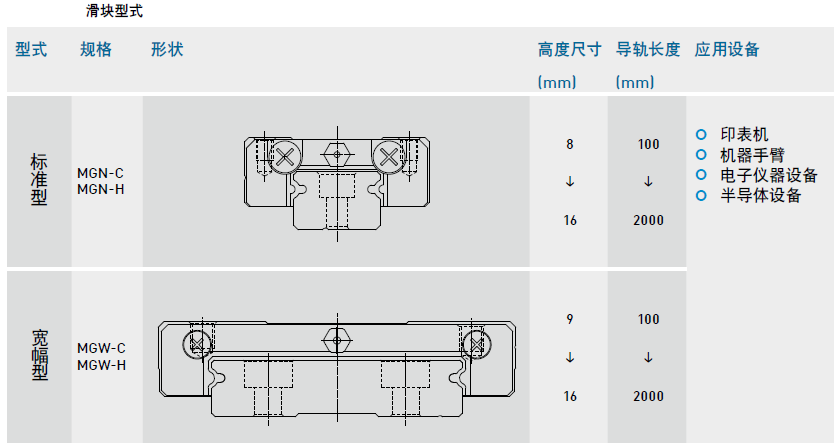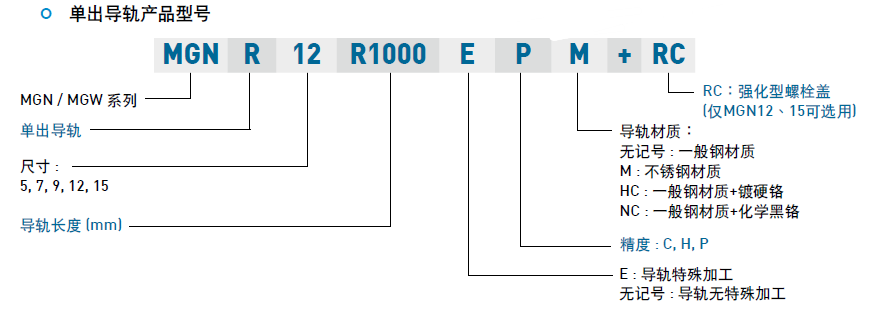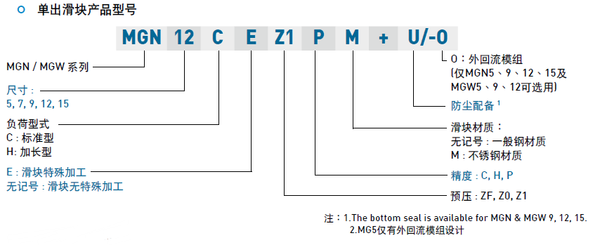 微型直線導(dǎo)軌MG系列的命名規(guī)則及型號(hào)