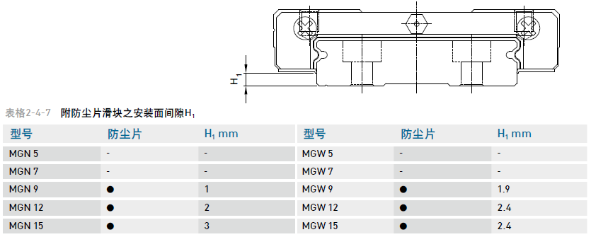 MGN/MGW 系列提供普通間隙、無(wú)預(yù)壓、輕預(yù)壓三種預(yù)壓力。