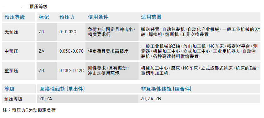 QH 系列直線導(dǎo)軌提供三種標(biāo)準(zhǔn)預(yù)壓,可依據(jù)用途選擇適當(dāng)預(yù)壓力。