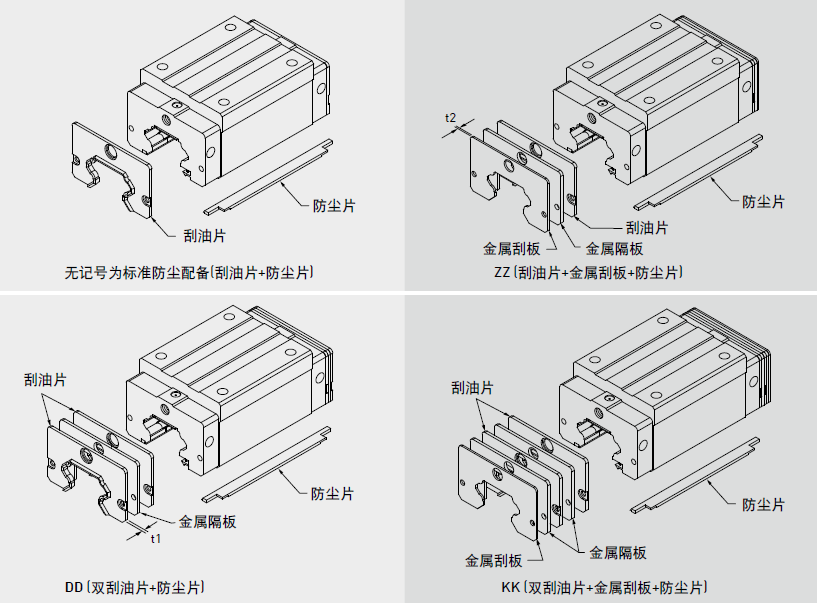 阻止加工鐵屑或塵粒進(jìn)入滑塊里面,破壞珠道表面而降低直線導(dǎo)軌壽命。