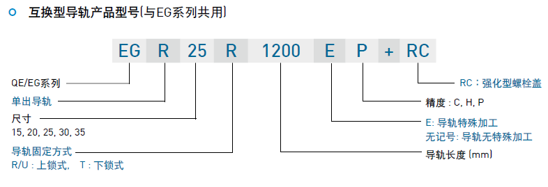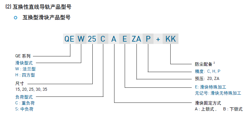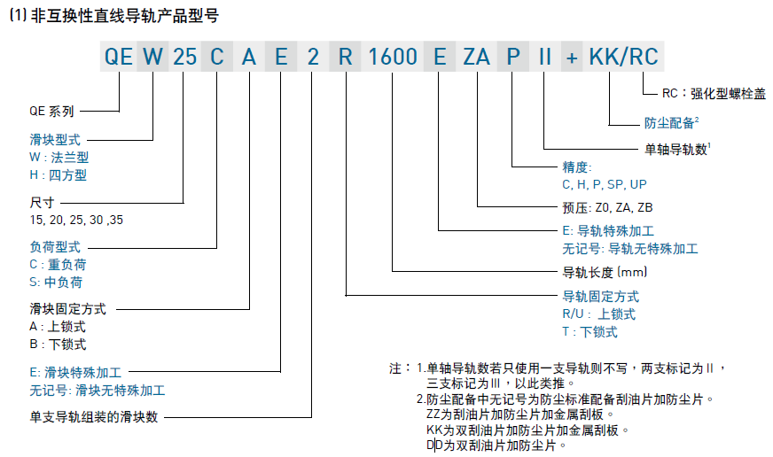 (1) 非互換性直線導(dǎo)軌產(chǎn)品型號(hào)