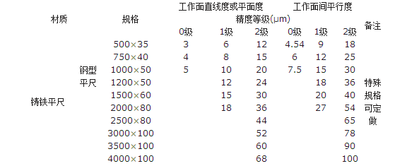 檢驗平尺物理特性:比重:2970~3070kg/㎡抗壓強度:245~254N/m㎡強性磨量:1.27~1.47N/ m㎡線膨脹系數:4.6×10~6℃吸水率:0.13%肖氏強度:HS70以上。